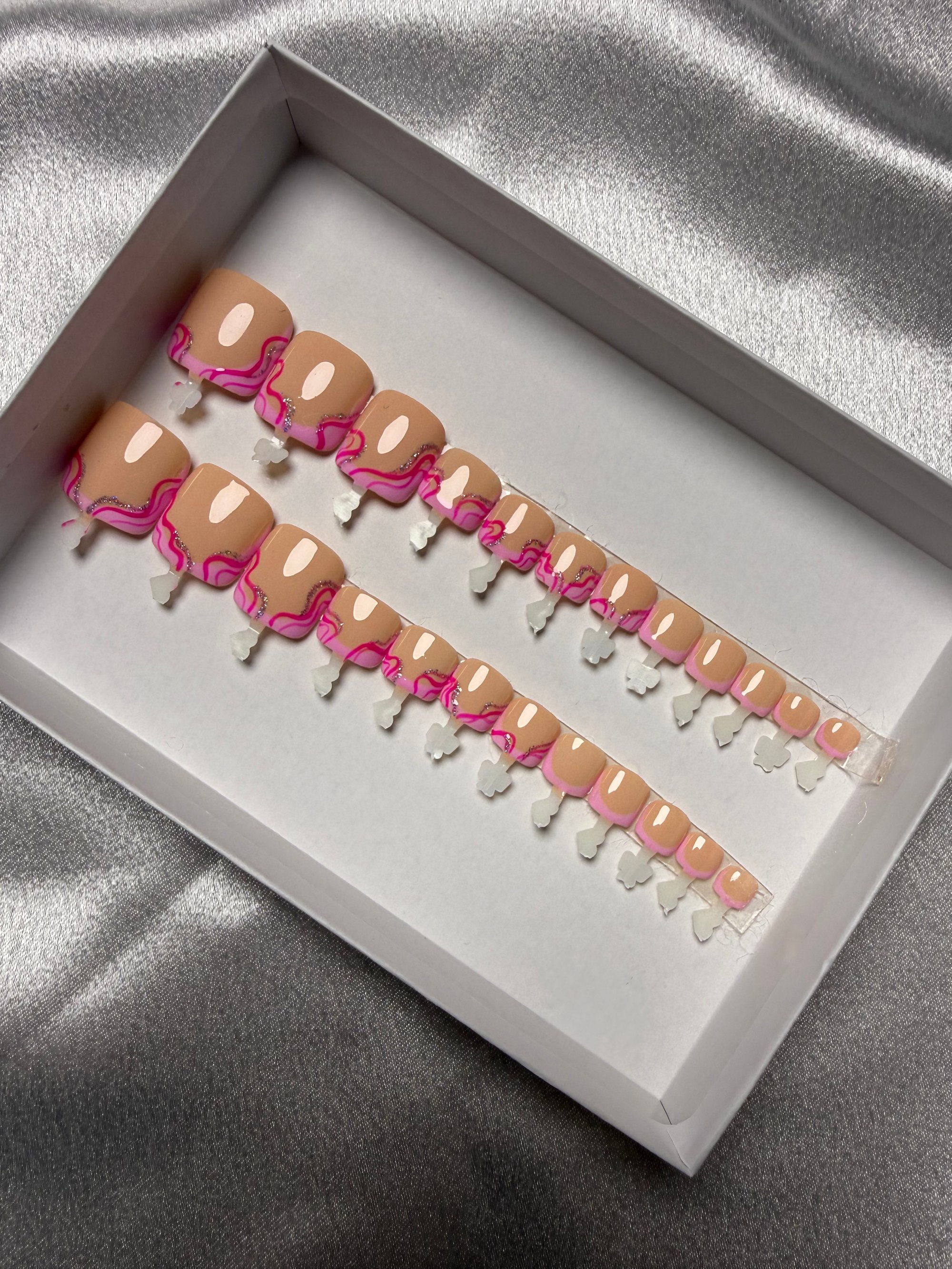 Warm nude tones paired with flowing pink accents creating a soft yet stylish design.